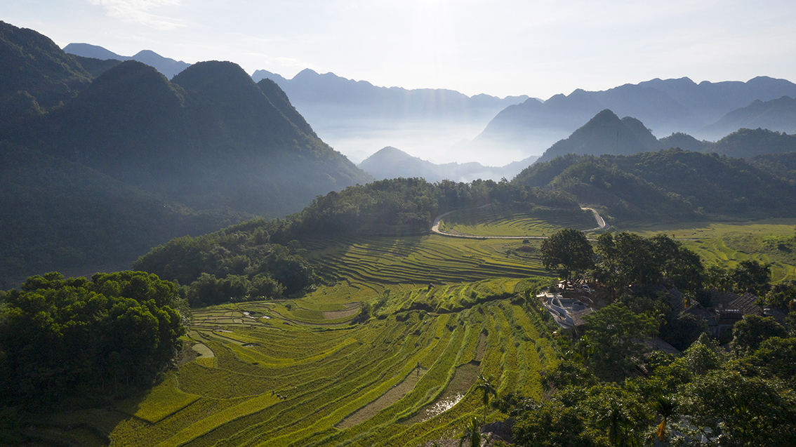 Một trong những điểm nhấn của Pù Luông là những thửa ruộng bậc thang. Những thửa ruộng nằm san sát nhau, trải dài từ chân núi lên đỉnh núi tạo nên một khung cảnh vô cùng hùng vĩ và thơ mộng.